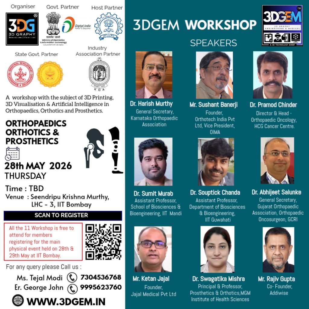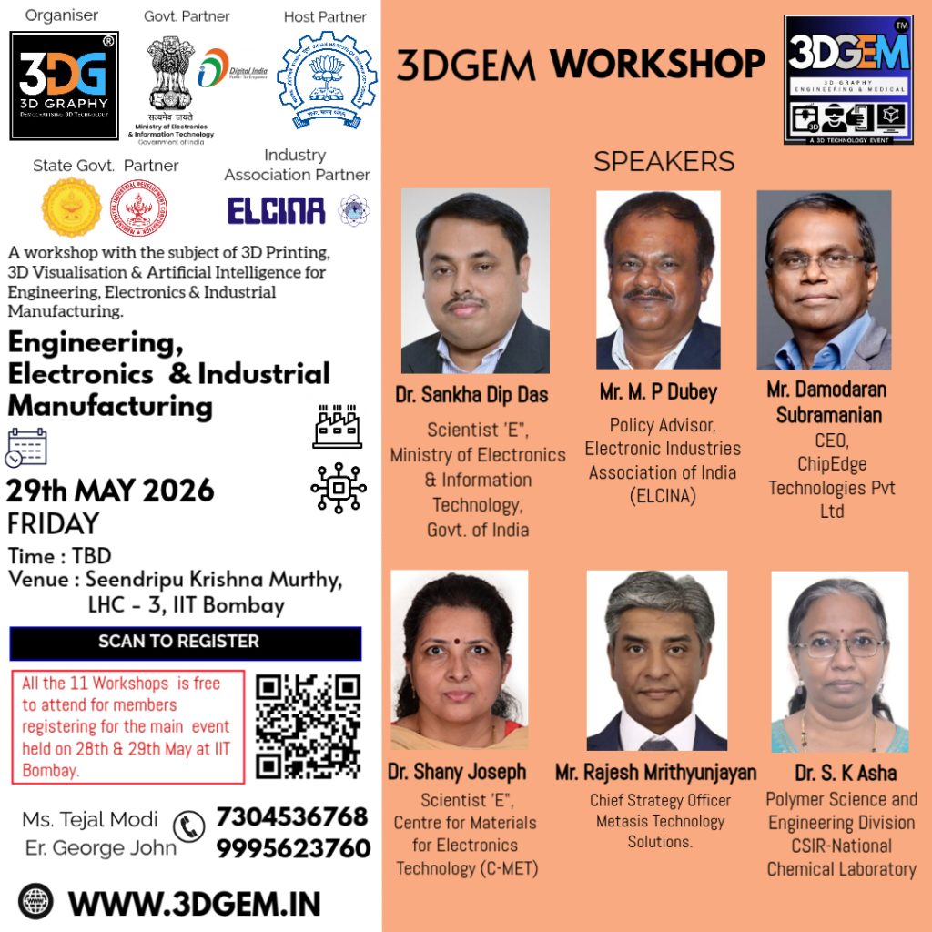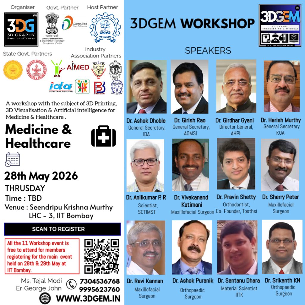 The 3D GEM Workshop is designed to engage students, researchers, academia, industry professionals, startups, designers, doctors, engineers, scientists, architects, 3d technology makers and others, from both engineering and medical domains, providing insights into sector-specific specialisations and industry applications of 3D technologies.