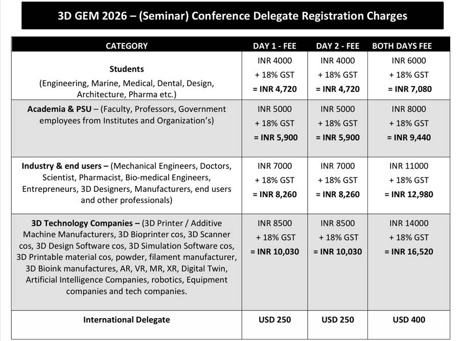 6. Delegate Fee – 3D Technology Cos – Participants registering as delegate must pay ₹16520