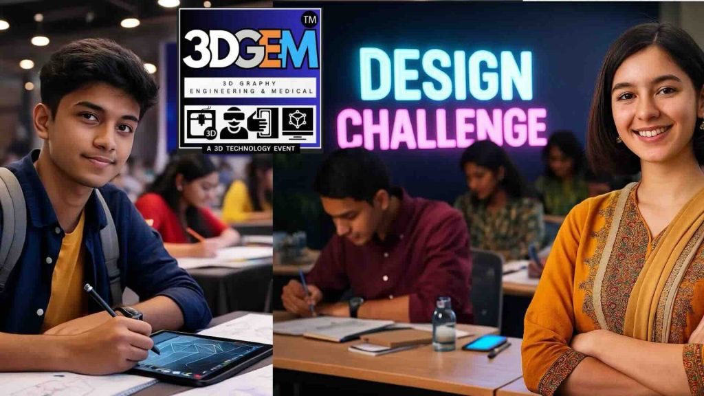 The 3D GEM – Design Challenge Competition is a national-level innovation platform organised as part of the 6th Edition of 3D GEM 2026, focusing on 3D Printing, 3D Scanning, CAD Modelling, AR/VR/MR Visualisation, Digital Twin, and AI for Engineering & Medical applications.