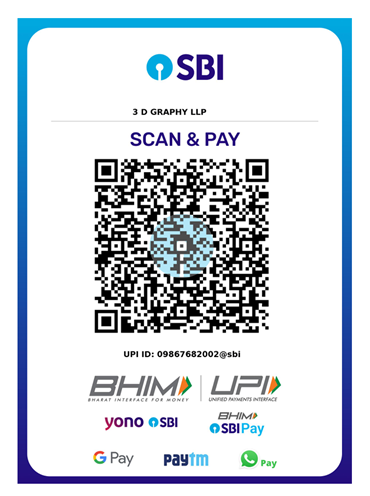 - Go to Account details shared below about 3D GRAPHY LLP – you can make the payment by NEFT or use the QR code scan.